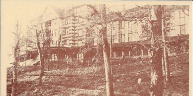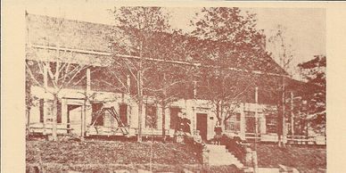 The Wigwam Hotel was built in 1890 on the hill above the spring on the ten-acre reservation owned by the State of Georgia. This site was a part of the original Indian reserve. It was a four- story frame Victorian structure, said to be one of the largest frame buildings in the world at that time. The hotel burned August 21, 1921. The printing of this card was donated by the citizens of Indian Springs, Georgia.